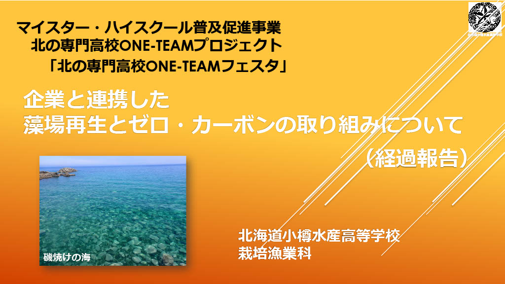 2月13日(金)、札幌コンベンションセンターにて開催された、北海道教育委員会主催の「北の専門高校ONE-TEAMフェスタ」において、共に取り組みを進めてきた北海道小樽水産高等学校の生徒による成果発表が行われました。